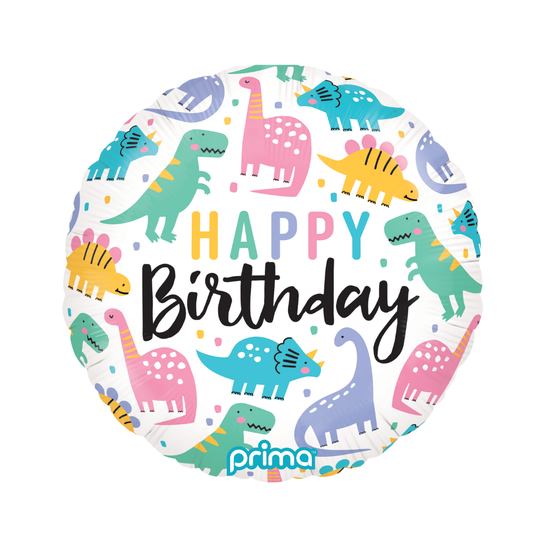 Birthday Colourful Dinos 18" Round