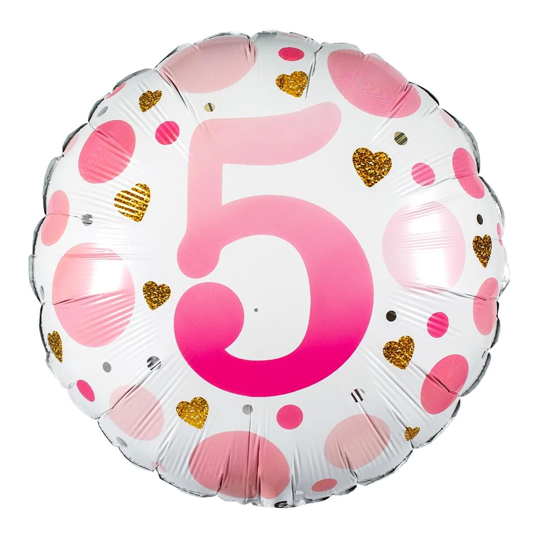 Age 5 Pink Dots 18" Circle Qualatex