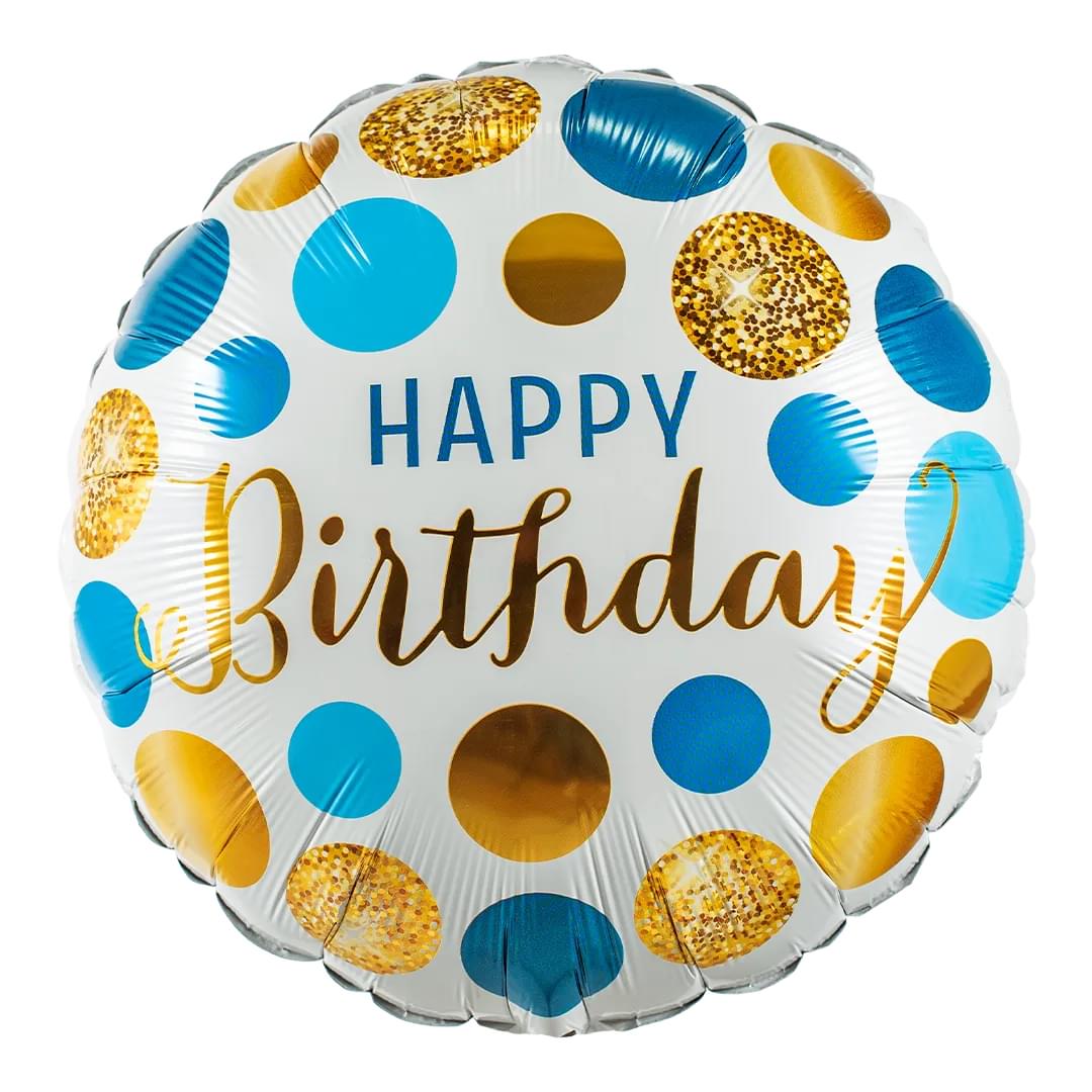 Birthday Blue & Gold Dots 18" Circle
